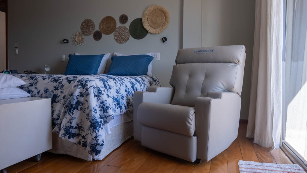 Poltrona reclinável elétrica oferece conforto, autonomia e segurança para idosos em recuperação, facilitando o cuidado e melhorando a qualidade de vida no pós-operatório.